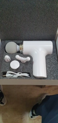 This compact massage gun delivers powerful percussion therapy to ease tension across your entire body. Its ergonomic design makes it comfortable to use on the neck, back, legs, and arms, whether you're at home, at the office, or recovering after a workout. With multiple interchangeable heads and steady vibration output, it helps relax tight muscles, improve circulation, and speed up recovery. Simple to hold, easy to control, and effective for daily relaxation.